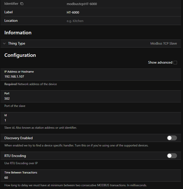 I Installed Modbus binding and try to configure the Modbus:Tcp:Slave bridge. I need to place IP address of the inverter there. But. I can not figure out what the IP is? My router is not providing it (I do not see it) and all my tries result with failures.