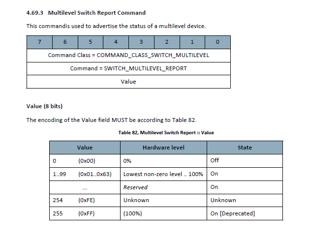 2020-12-10 13:28:26.465 [DEBUG] [col.commandclass.ZWaveMultiLevelSwitchCommandClass] - NODE 2: Switch Multi Level report, value = 254