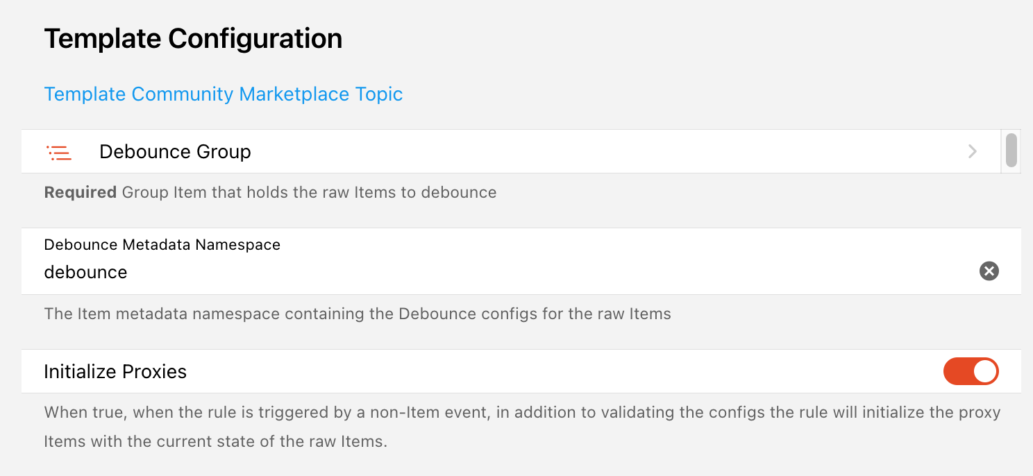 Until now, I personally have approached rule templates like the Wizard of Oz: “Don’t look behind the curtain!” You shouldn’t really need to look at the code for a template, just the parameters and what they mean. For example, take Debounce [4.0.0.0;5.0.9.9]. All the end users needs to see is: