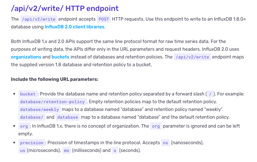 So it’s getting a 404… However the influx docs tell me that the org= parameter is ignored. And the datasbe should be specified in the bucket parameter…