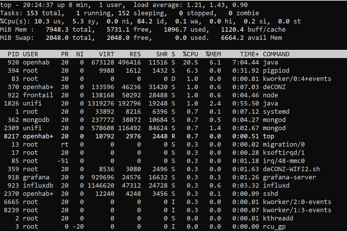 After restart I checked the running processes and the OH is taking the most resources 25-35%