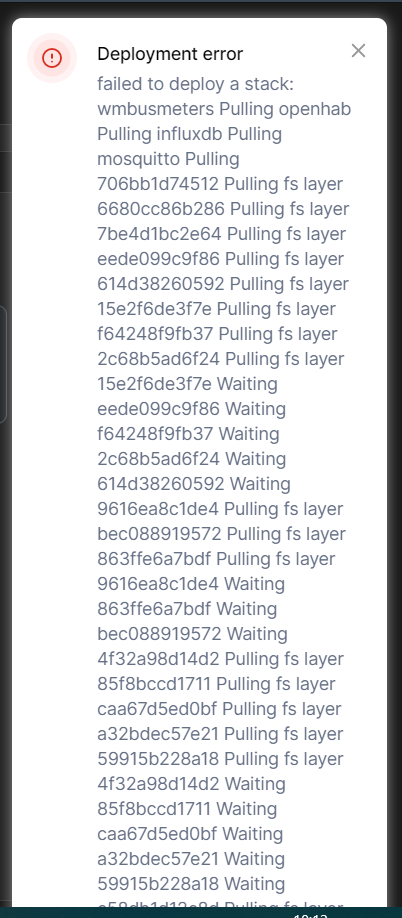 - Use the āAdd Stackā-button to add the following Stack and deploy the respective containers defined in that stack.