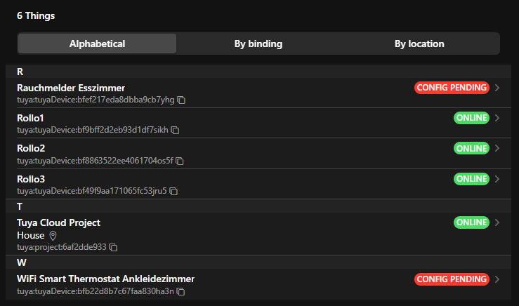Now I have a new problem, the roller shutter switches all work but the thermostats from SALCAR (Type: TRV801W) show the following problem. See pictures