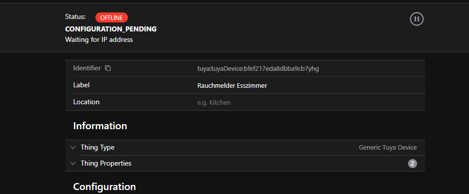 Install using the 3rd party method. bundles/org.smarthomej.binding.tuya