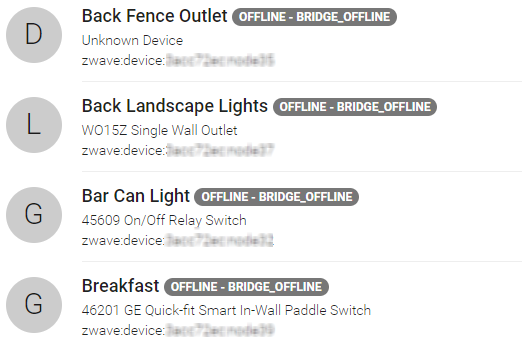 I thought I would use some of the downtime to install the Samsung TV binding. Immediately after the installation completed all of my Z-Wave devices went offline with the error message - Bridge Offline