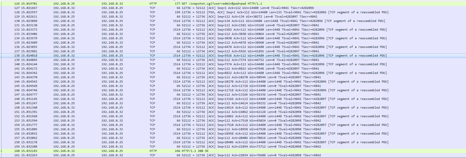 thanks for the tip with traffic pickup. I recorder the traffic between my devices (192.168.0.25 is the openhab host and 192.168.0.32 is the cam). The pcap session is attached: