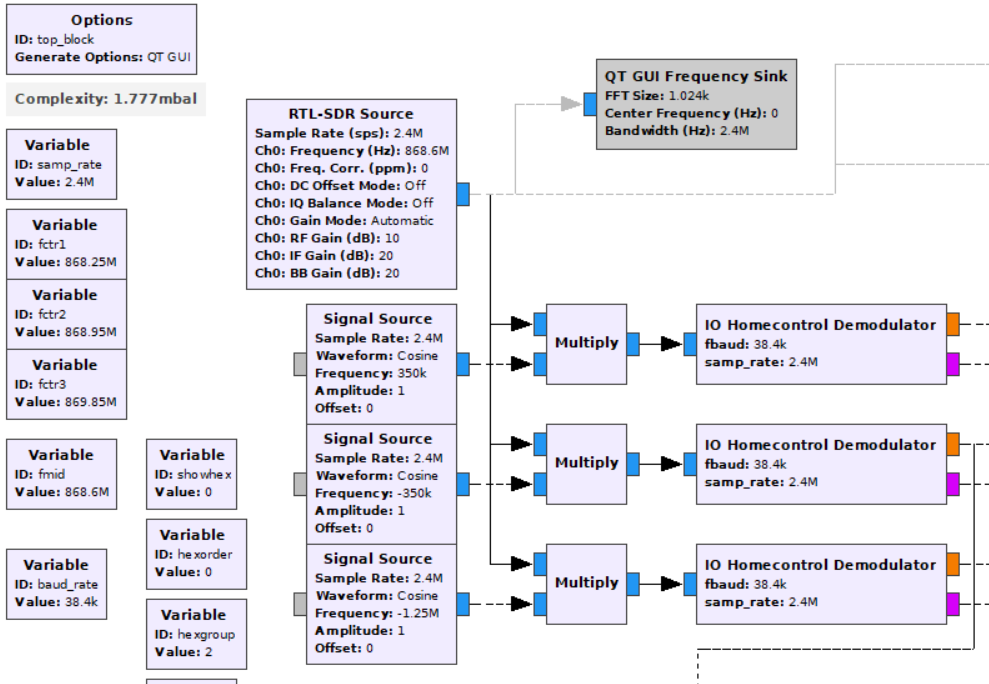 Sadly they use “3 split sub-wavebands” (868.25 MHz, 868.95 MHz and 869.85 MHz) according to the adf7022 product site, which I dont know how to handle with GNU Radio