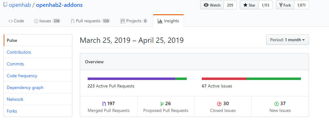 This is the pulse of the openhab2-repo for the last month. (Public visible on github)