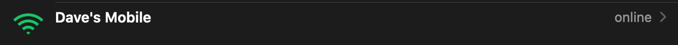 Number Presence_Mobile_Dave "Dave's Mobile [MAP(NumberToOnlineOffline.map):%s]" <network> (gNetwork) ["Status"] {channel="network:pingdevice:6d5264bb21:online"}