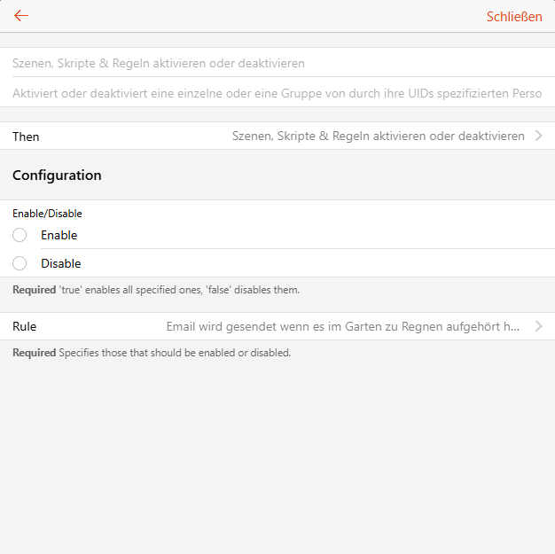 when a enable/disable scenes/script/rules is selected as an action in a rule design