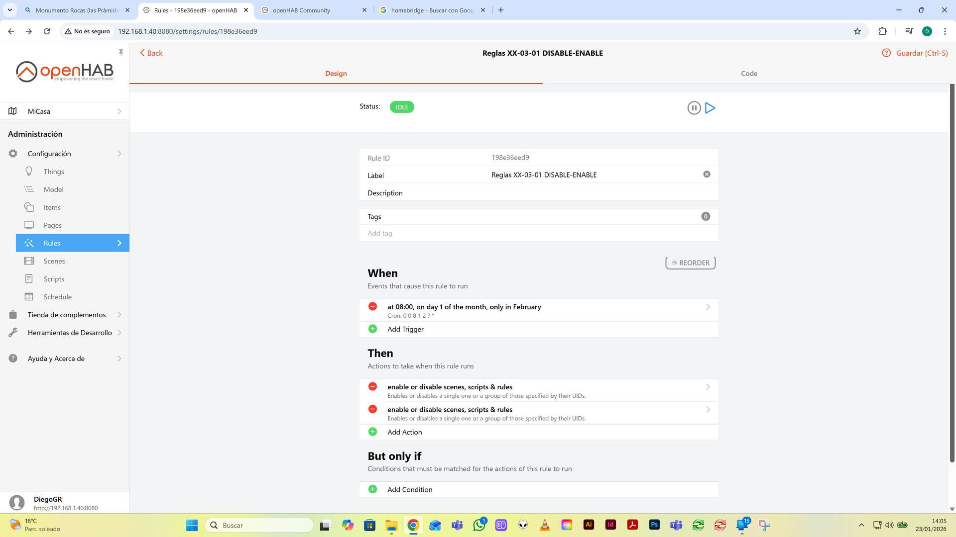 Action id 3 shows enable as TRUE, but it is not shown in the previous selection box. I have noticed that this happens in all the OH 5 versions, but not in OH4.