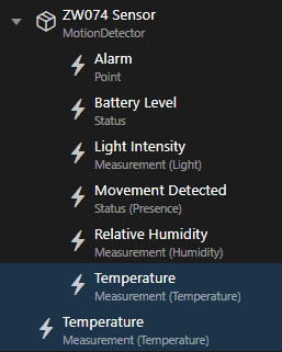 In this particular case you would have a âSetpoint/Temperatureâ and a âMeasurement/Temperatureâ so in any case you would have 2 readings in the temperature badge.