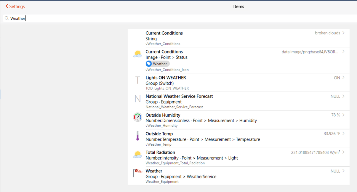 Create Groups to organize the Items outside the semantic model, when the “show non-semantic” is checked your Items will also appear hierarchically based on Group membership. In the screenshot below of my Model page, everything from “All Lights” and below are non-semantically tagged Groups which can be opened to see the members of those Groups.
