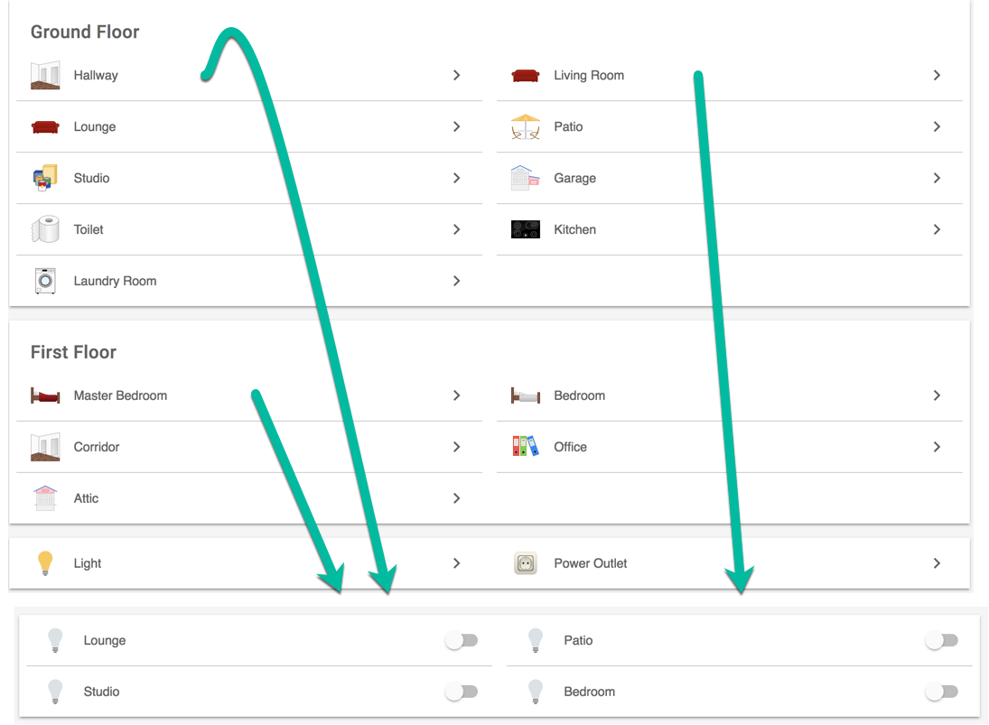 I have used the Home Builder page to create my basic config and then tweaked it in an editor. Where I have added additional lights to a room I have simply changed the value in the first column by adding a 1,2,3 suffix and of course changing the channel entry. Everything works and looks ok except at the bottom of the default page I see two item groups for Lights and Switches. In the lights section I only see those rooms which have 1 light and none of the ones which I manually edited 1,2,3. In the switches group I don’t see any values as I renamed the default switch in the garage and duplicated it so I have Garage switch 1 and 2 etc.