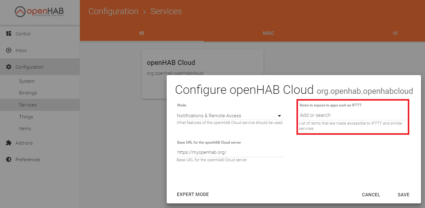 Note: You don’t need to expose ANY Item in the Cloud connector configuration if you simply want remote access and notifications.