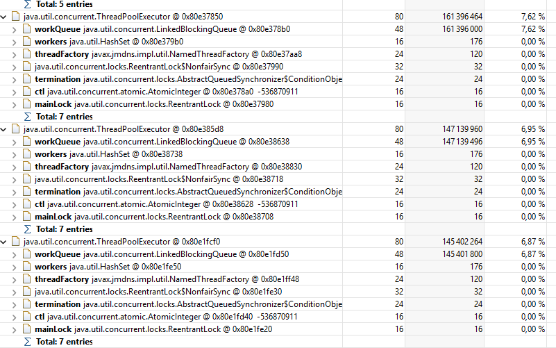 Those queues, in the end, will consume all available memory. Thus, exactly which objects that exist in the highest numbers might not be that important, they probably exist because they are stuck in a non-moving queue. This probably isn’t technically a memory leak (which is very difficult to achieve in Java), but the effect is much the same.