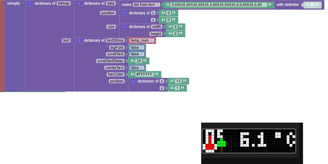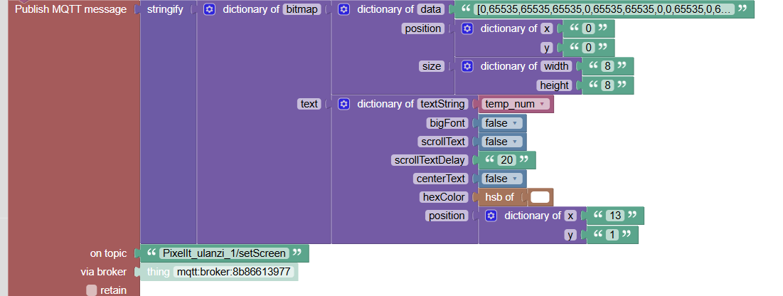 I wanted to use json tools under Blockly to control a pixel clock via MQTT, but I can’t send bitmaps to it. How do I construct the JSON string so that the array is not treated as text?