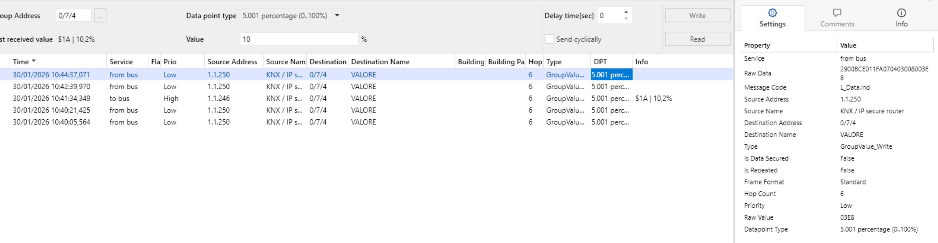 I’ve opened ETS diagnostic and se an empty message coming when I change the value from openhab, can you please point me out how to correctly send the 0-100% value expected by datapoin 5.001?