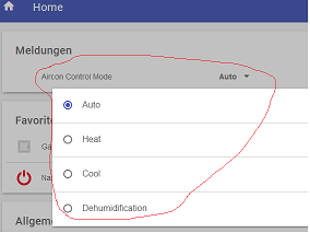 50% are working - air conditioning control mode can be chosen via selection menu and is sent correctly to the device.