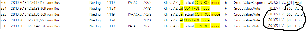 I’m wondering about the most right column “Info”. Compared with manual setting/getting control mode, the values have a “$” sign and show the right DPT 20.105: