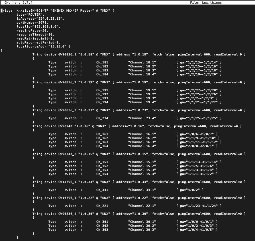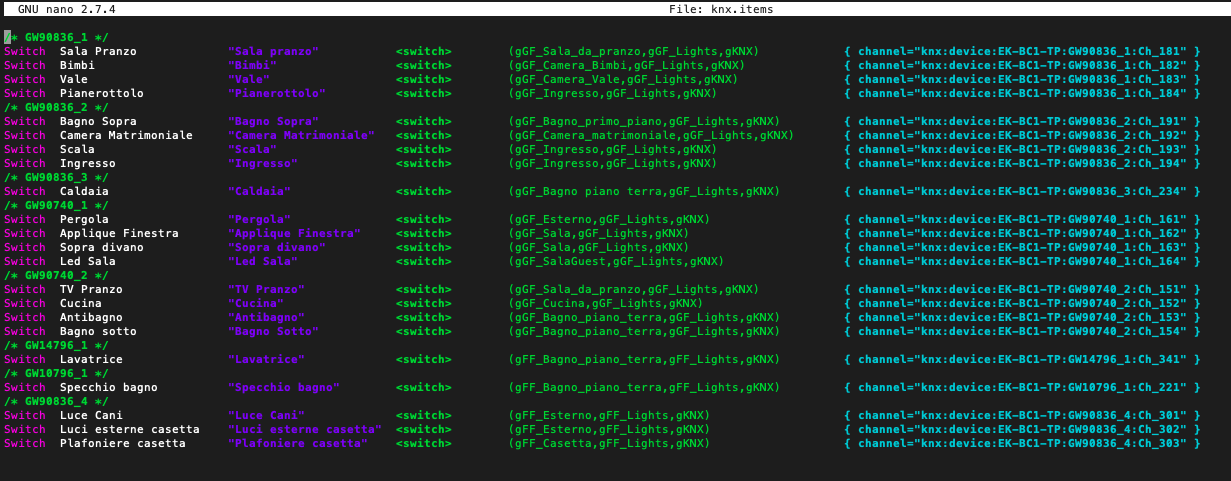 Via PaperUI, I created Things starting from KNX BINDING, configured channels of my KNX objects and created Items.
