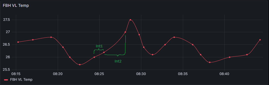 On the other side and this is the reason for my question, if the target temperature reached with a small delta, from this delta occurs a permanet change of the PID-Controller-Out. The Output is slowly driffting (I-part). This is correct. I get problematic states, if in this case the current temperaturevalue (input from the PID-Controller) for a longer time interval is not updated. In combination with big temperatur fluctuation on input it’s not so nice.
