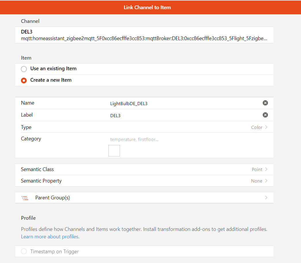 Not even sure, how the trigger channel would actually do all the switching, dimming and color changing, as creating the Itemfirst and the trying to link it back to the trigger channel, doesn’t work neither.