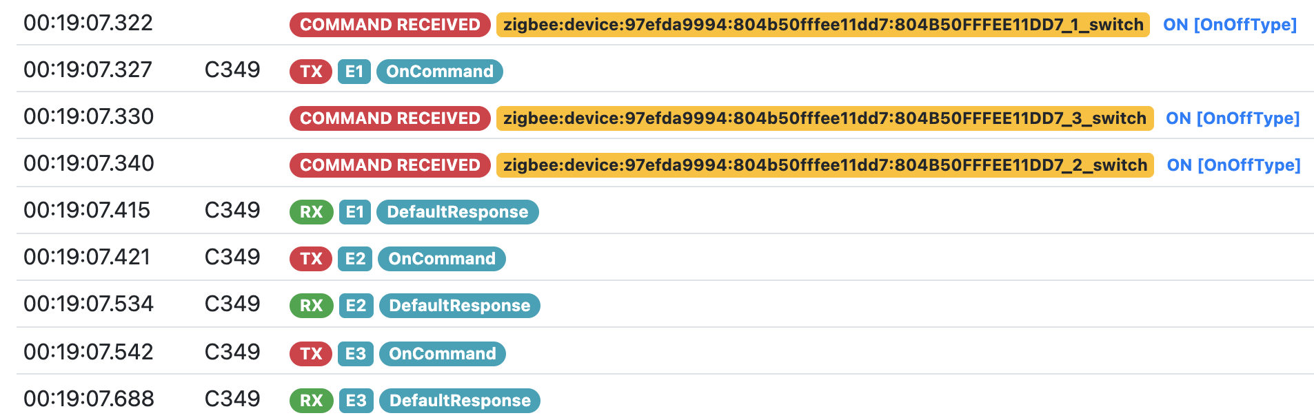 00:19:07.311 [INFO ] [openhab.event.ItemCommandEvent ] - Item 'TZ30001obwwnmqTS011F_804B50FFFEE11DD7_1_Switch' received command ON