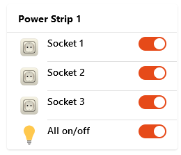To be precise: the ‘All on/off’ UI element is a Toggle List Item within a List Card (type: Media) that references the Power Strip: