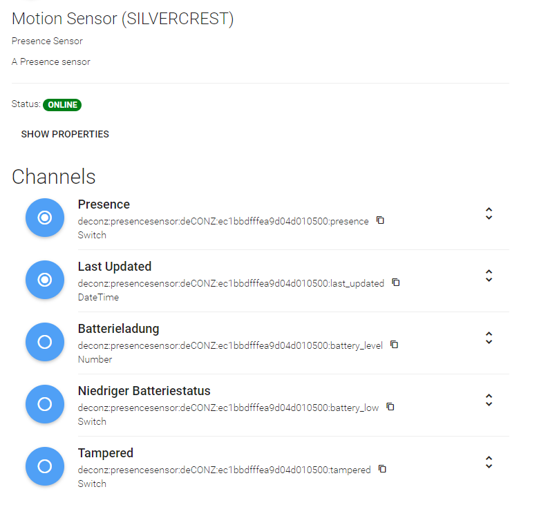 Ich nutze Silvercrest Motion Sensor auf Raspberry / Openhab 2.5.1 / deCONZ / ConBee II