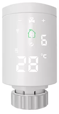 The TRVs aren’t marked anything, no manufacturer’s name, no model number, no serial number, nothing. The top of the vave is removable to fit 2 AA batteris, and has a small grating presumably so that a LED can show through or so that a beeper can sound through it (or both). The disaply/touch keys are on the cylindrical sides of the valve. The only thing that is visible when the valve is not powered up is a “home” icon, but during the power up sequence lot of other indicators or touch buttons come on. Some very similar Tuya valves have the display on the end of the cylindrical unit. This one does not - they are on the side, like this: