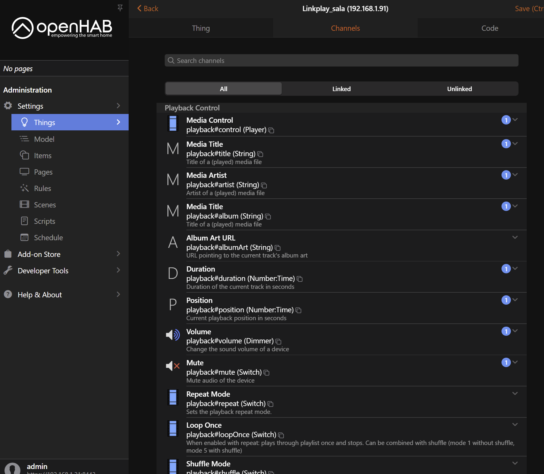 I managed to integrate it in openHab and I’m now able to control it. I have not created items for all of the available channels. Some because I don’t think I need to and some because I can’t ( can’t test the group functionalities since I only have one Linkplay device).