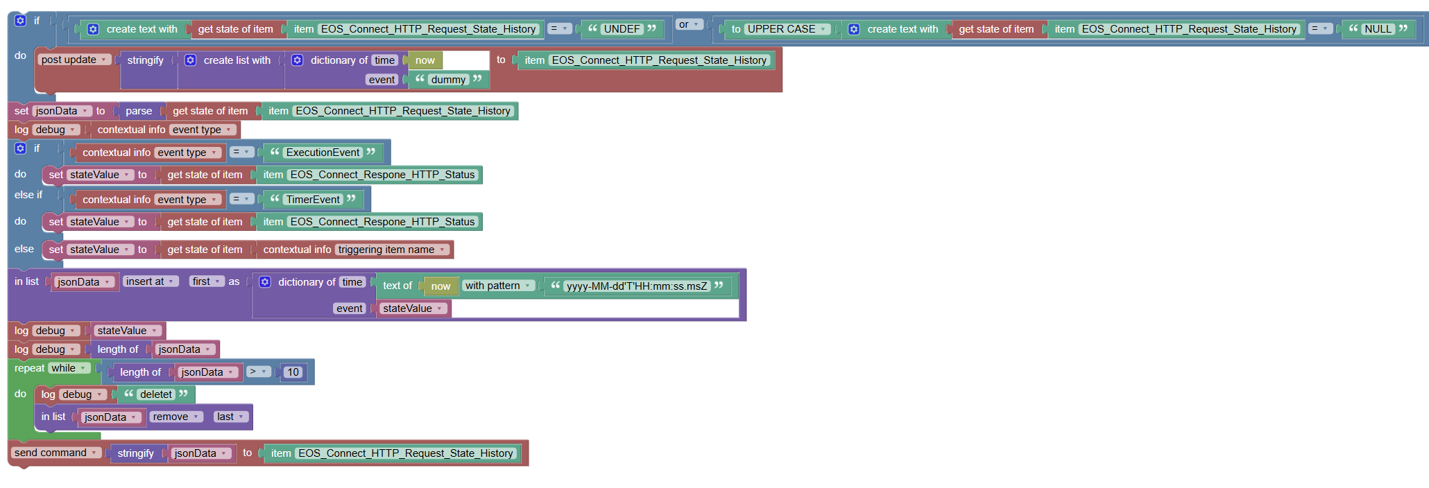 history.unshift({"time": `${tStamp.format(timeForm)}`,"event": `${items.getItem('Sprinkler_TimerBox_ScheduleInfo').state}`});