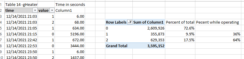I have two zones, up and main and have a persisted gHeater group that is either 0,1,2 and use the time stamp to calculate totals. I try to maximize both zones being on at the same time by adjusting setpoints, so summarize that too.