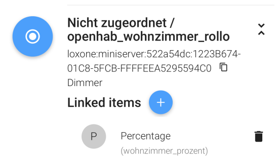and one item linked to loxone (wohnzimmer_prozent_loxone).