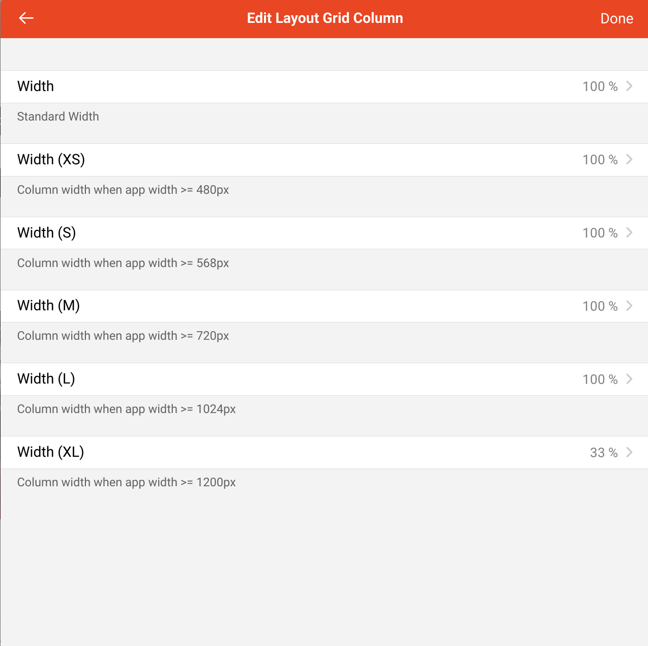 In the above example, the widget takes up a third of the screen on large screens and 100% on others. So my layout has 1 column of widgets for small screens and three for larger.