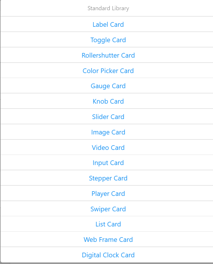 The components of the System Widget Library are the individual components with which you can build your own custom widgets so you can’t just put an oh-button on a page. There is not Button Card because this doesn’t really make sense (it doesn’t add any additional functionality) given that the cards themselves, via their action configuration, can be configured to have all of the same action effects as a button.