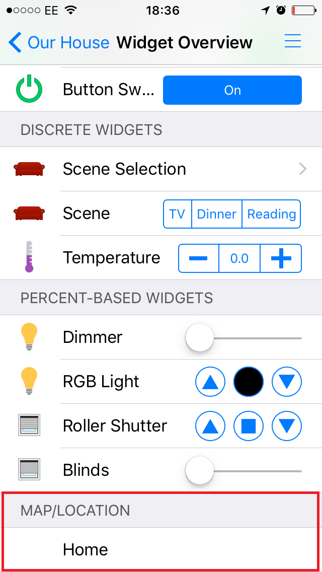 However when I visit the same section on my mobile phone OH2 app location is not shown.