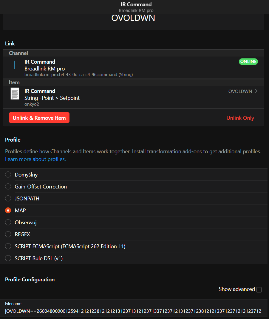 I’ve stramge issue with map transformation for Broadlink binding IR code