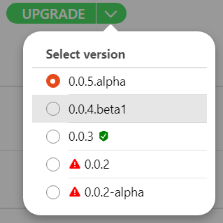In my example, the circle indicates the currently selected version. The one with a gray background is the currently installed version (if any), the green sheld indicates the latest stable version and the red triangles indicate versions incompatible with the current OH installation. The incompatible ones will only be shown if “Include (Potentially) Incompatible Add-ons” is enabled in the “Add-on Management” settings. It’s probably unlikely that a “real world” add-on would look like this, but I need to test all options.