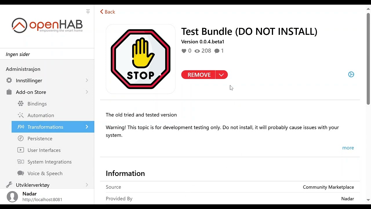 Where I could use some “ping help” is on this simple bugfix that would make marketplace transformations work also after OH is restarted: