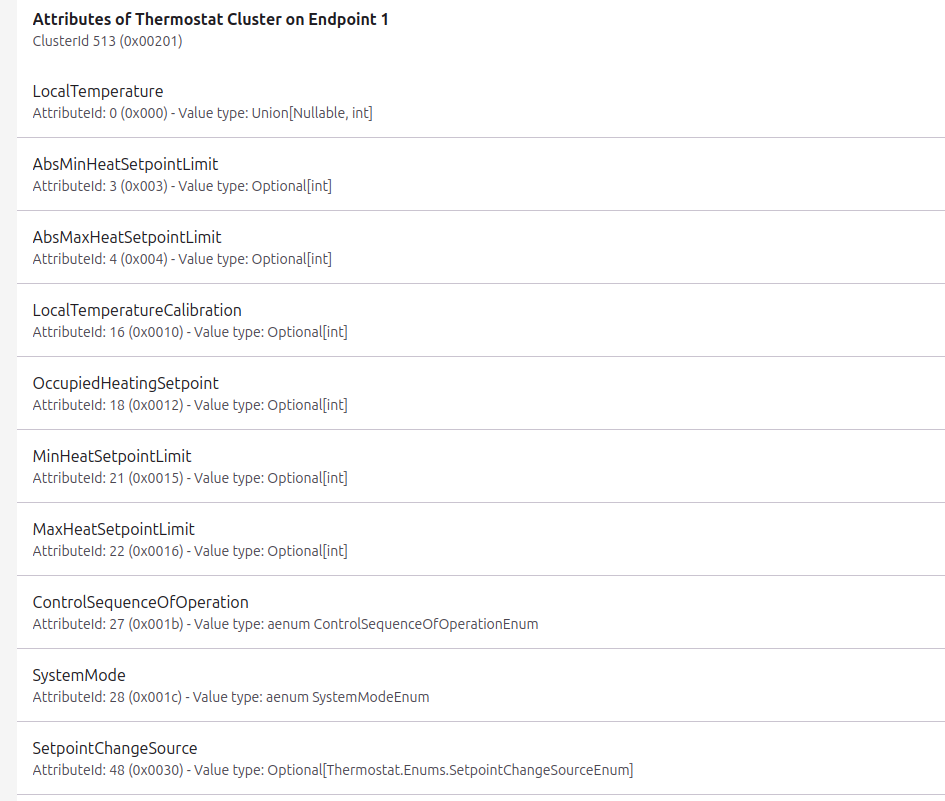 I’m only exposing the most common attributes as that cluster is quite large and complex. I was not really aware of localTemperatureCalibration or that any devices yet were using it. Its probably easy enough to add however, so i’ll put that on the list and see about maybe back porting for a patch release.