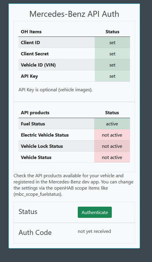 The good thing is that I have already started to rebuild the whole thing based on pmpkk for the Mercedes-Benz API integration in openhab.