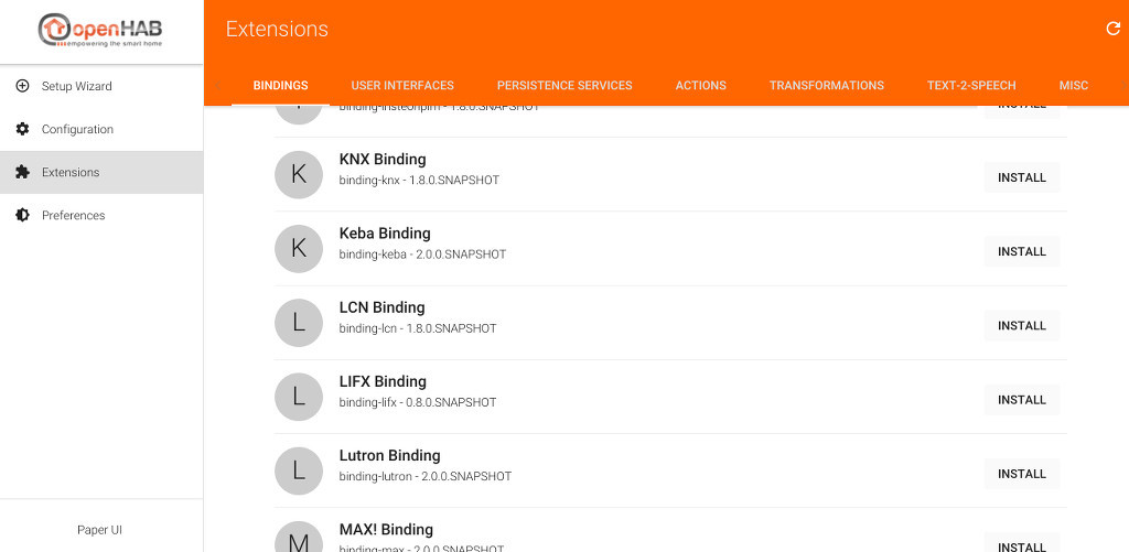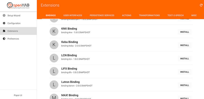 Once additional change that I would like to mention is the move to Karaf, which I am currently pushing. This will bring quite some goodies, especially it allows to define proper dependencies between add-ons - with it, it is e.g. not necessary anymore to know that a certain binding requires a specific transport bundle etc. Instead, it will nicely install whatever is required and we can even have UIs for that like