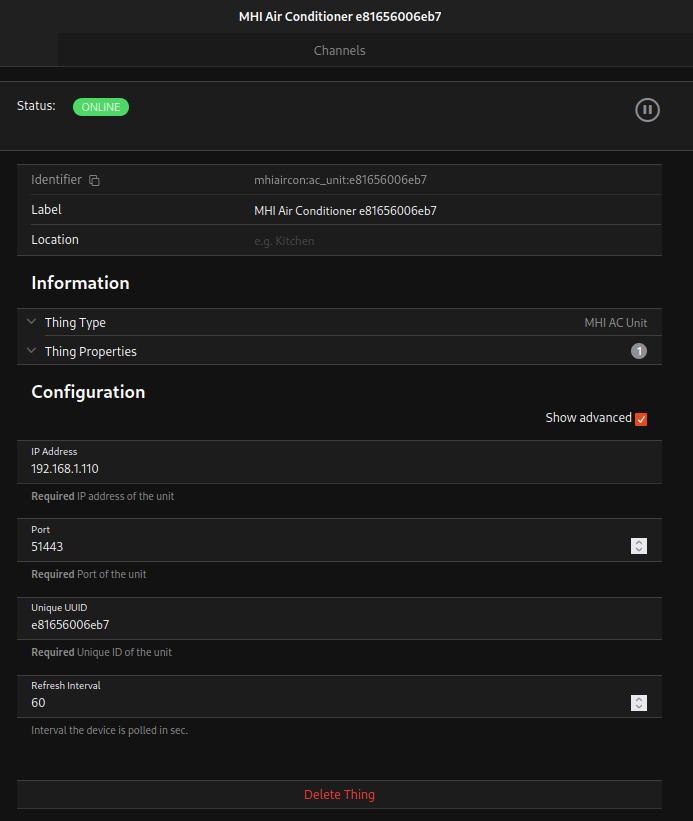 I’m at the stage where the basic stuff works: discovery, settings, refresh time. Now the binding is trying to connect the unit on IP and port, but obviously the connection fails as it’s still trying to connect it as it was a Daikin unit.