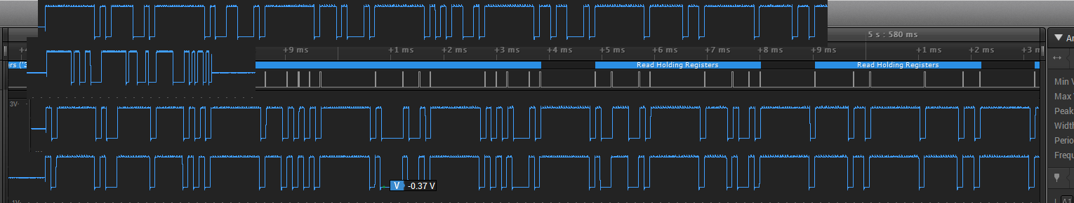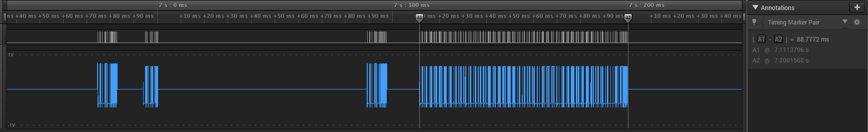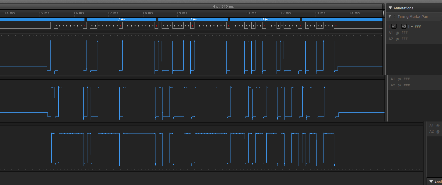 Now, looking at those detail pictures again. I’m not sure of polarity here, but I think the query transmission always starts and ends with a “high”? Have a look and check.