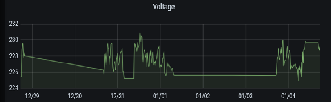 2021-01-05 04:51:56.862 [DEBUG] [ernal.handler.ModbusDataThingHandler] - Thing modbus:data:endpointSDM120:inputRegisters:Voltage channels updated: {modbus:data:endpointSDM120:inputRegisters:Voltage:number=227.10000610351562}. readValueType=float32, readIndex=Optional[0], readSubIndex(or 0)=0, extractIndex=0 -> numeric value 227.10000610351562 and boolValue=true. Registers ModbusRegisterArray(4363199A00000000000000003FDAE148000000000000000042C20000000000000000000043BCD05B0000000000000000C3B6733300000000000000003E839EC1000000000000000000000000000000000000000000000000000000000000000000000000000000000000000000000000000000000000000000000000000000000000000000000000000000004247CCCD44D6D5DB00000000418F147B451395E7) for request ModbusReadRequestBlueprint@1aa1c08[slaveId=1,functionCode=READ_INPUT_REGISTERS,start=0,length=80,maxTries=3]
