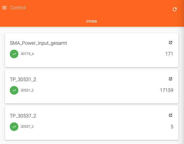 Next I made a setup to read the CURRENT POWER and the CURRENT YIELD of my SMA inverter.