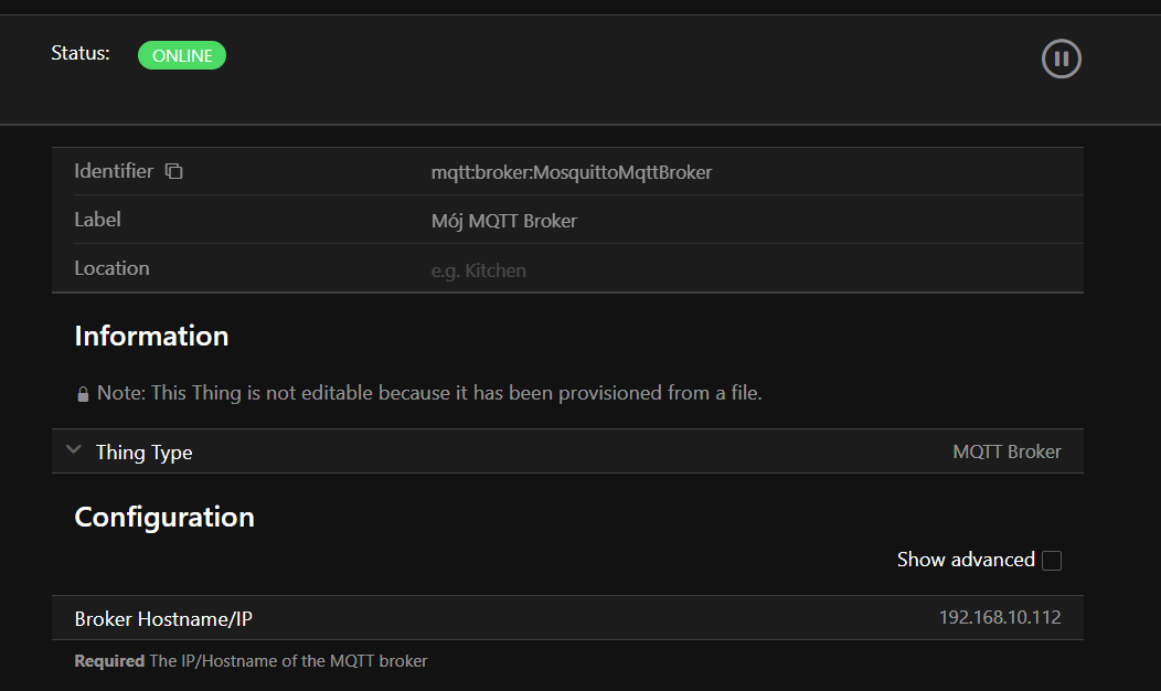 Bridge mqtt:broker:MosquittoMqttBroker “Mój MQTT Broker” [