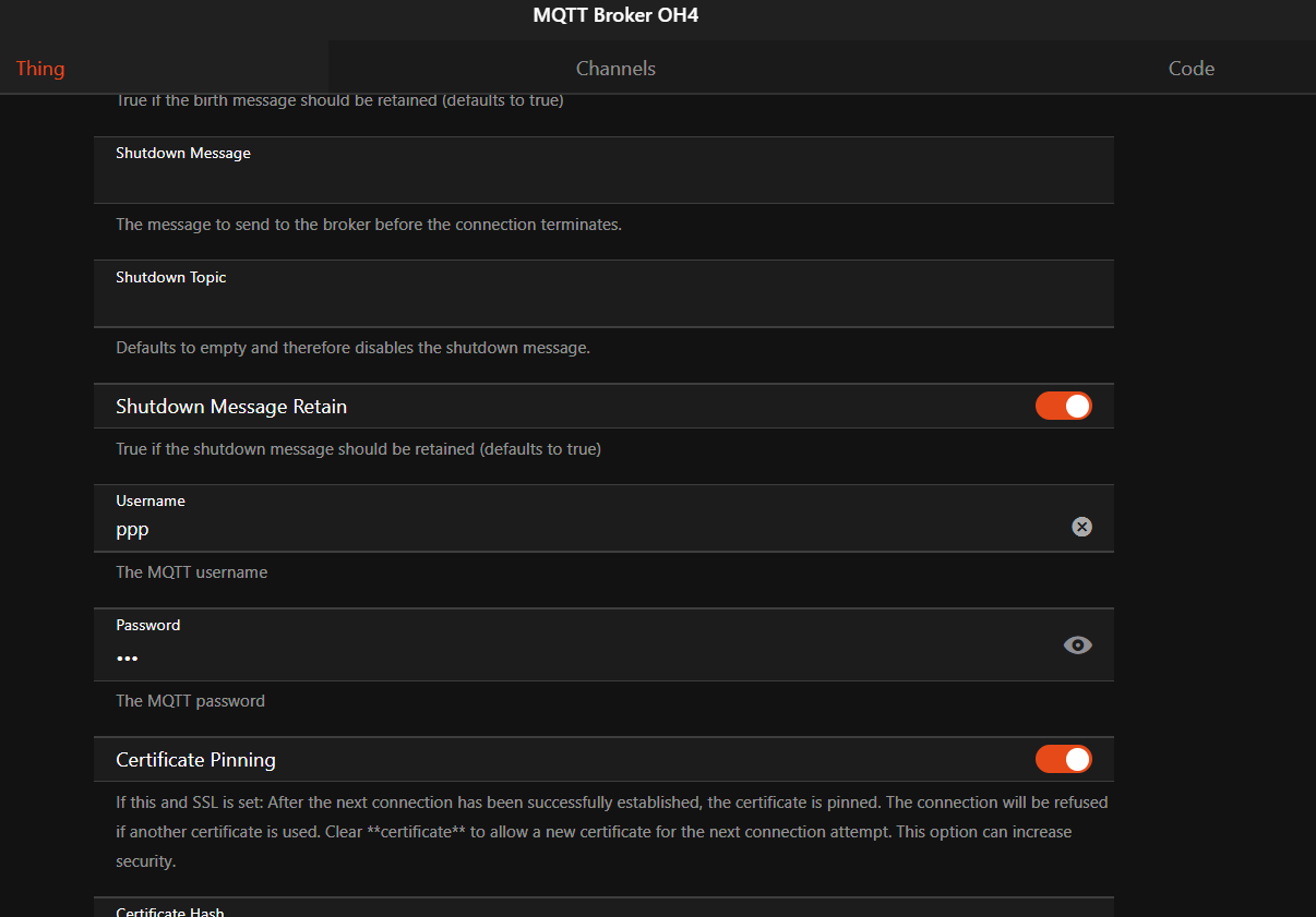 That is the same as I have except I put in a clientid. I made it openhab4 as the name.